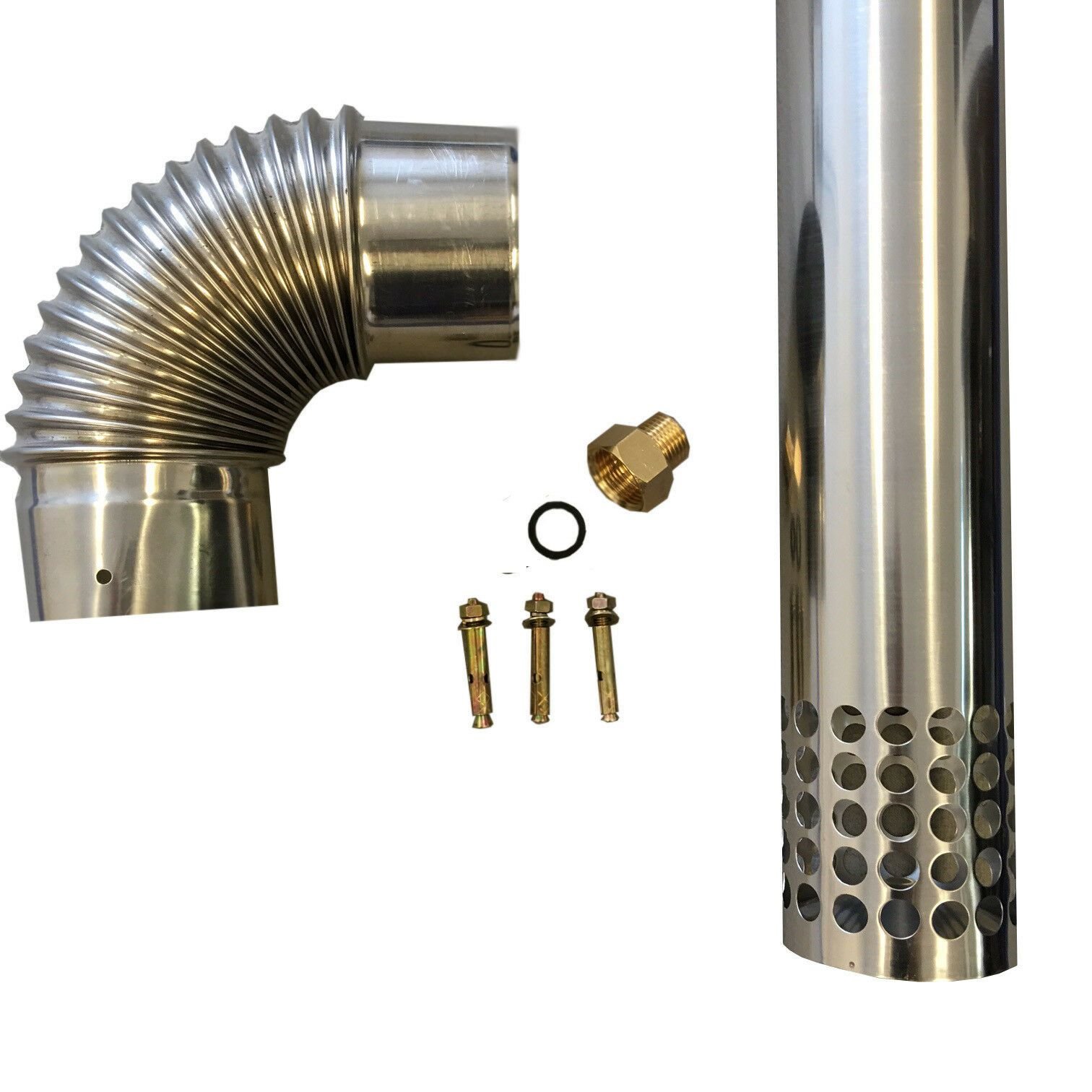 - Comes with a Free Flue Kit consisting of an elbow and 2′ straight piece.