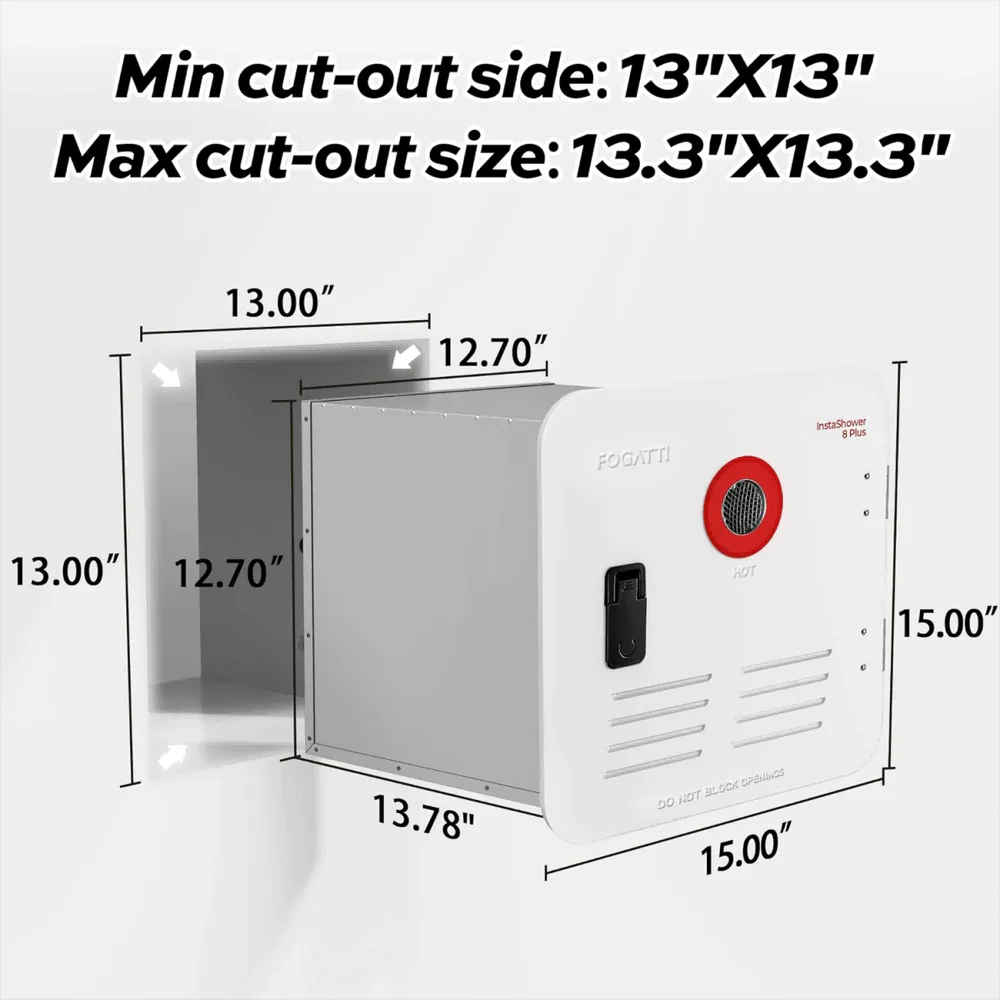 The Fogatti InstaShower RV Tankless Water Heater delivers hot water instantly and reliably throughout your road trip. This water heater features a digital display controller for easy temperature adjustments, and a set temperature range of 95°F to 123°F. Staged combustion technology controls the amount of flame in Summer, preventing the water from getting too hot and saving the limited propane gas available for caravan travel. With 55,000 BTU of power, it can produce a maximum of 2.9 GPM of hot water.